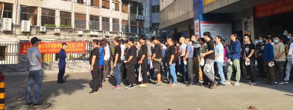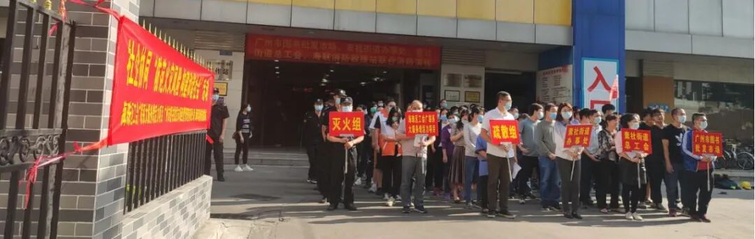 在活动中,工会社工首先介绍本次活动目的和内容安排,然后组织广州市图书批发市场内的商户、职工进行现场火灾逃生的实战演练。