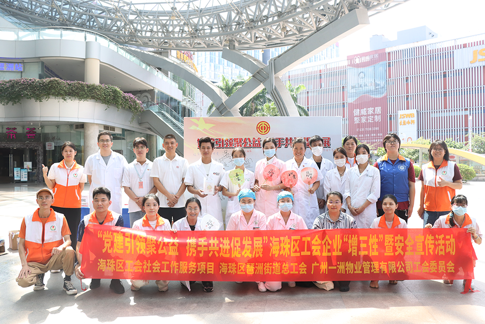 金秋送清爽,午间叙时光。为增强企业工会组织的政治性、先进性、群众性,发挥工会组织的桥梁纽带作用,同时积极响应习近平总书记关于安全生产的重要论述,2024年10月21日,海珠区工会社会工作服务项目(广州粤穗社会工作事务所承接)、海珠区琶洲街道总工会、广州一洲物业管理有限公司工会委员会联合举办了“党建引领聚公益 携手共进促发展”海珠区工会企业“增三性”暨安全宣传活动。一项项公益“微服务”,营造温暖和谐“大环境”,让职工暖心更凝心。