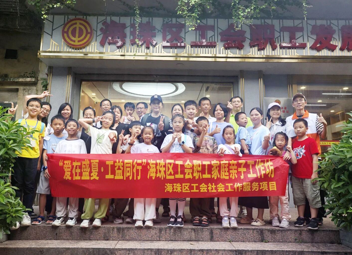 为积极响应国家《家庭教育促进法》的号召,缓解职工家庭的育儿压力,近日,海珠区工会社会工作服务项目(广州粤穗社会工作事务所承接)、海珠区工会『联系广泛服务群众』体系实践中心,在海珠区工会职工发展服务中心成功举办“爱在盛夏·工益同行”职工家庭亲子工作坊。本次亲子工作坊共设置五节内容,涵盖了破冰融合、安全教育、心理支持、阅读引导及艺术表达五大板块,内容丰富、形式多样,累计参与人次达128人次。