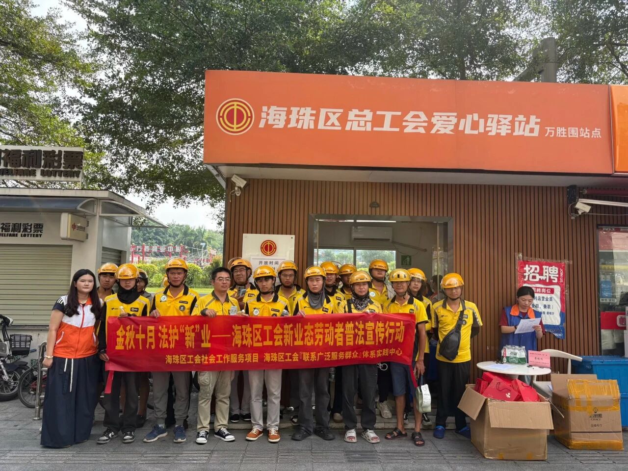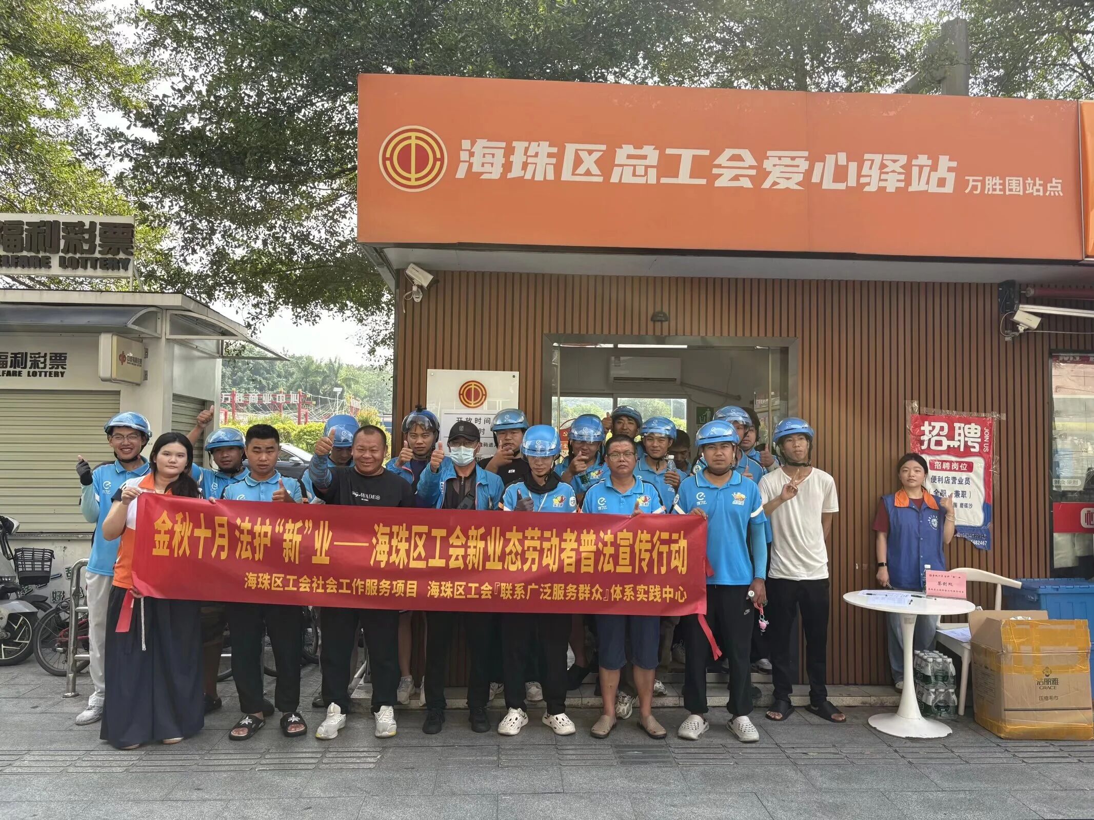 10月17日,海珠区工会社会工作服务项目(广州粤穗社会工作事务所承接)在工会爱心驿站(海珠万胜围站)举行“金秋十月 法护‘新’业”普法宣传活动。该活动以“趣味互动+智能服务+志愿共建”为创新载体,将法律知识融入沉浸式实践场景,助力新就业群体提升法治素养、筑牢维权屏障,为构建和谐劳动关系注入法治动能。 趣味互动破壁垒,普法学习“活”起来 活动以 “法治护航・趣学同行” 打造沉浸式体验。宣传材料采用 “三合一” 模式:《工会政策宣传手册》清晰解读入会与权益保障;《道路交通安全法图解单页》贴合职业场景标注重点;《漫画口袋卡》用情景漫画解读职业病防治法,便携设计适配碎片化学习。 “法治盲盒” 互动区人气十足,盲盒内含三大法规情景题与问答题。外卖员小李抽中 “配送超时纠纷维权” 题,经志愿者讲解掌握 “协商 — 调解 — 法律途径” 步骤,感慨:“游戏形式比文字阅读更有趣,步骤马上能用!”“安全拼图学法” 环节,参与者通过拼接安全交通标识,结合志愿者场景化讲解,深化对《道路交通安全法》的理解,让法条 “看得见、用得上”。 AI智联提效能,法律服务“快”起来 活动积极引入科技赋能,依托“AI智联・法护权益”板块,畅通服务“最后一公里”。在社工的引导下,新业态劳动者现场体验广州工会App的智能AI客服。当外卖员咨询加入工会事宜时,AI客服不仅能实时提供解决方案,还能迅速给出全流程指引,实现“指尖问法、即时解惑”,使服务更加便捷高效。 长效保障筑根基,权益守护“实”起来 行动不仅限于现场普法,更着重于构建长效保障体系。一方面,通过发放宣传折页、重点推广工会驻点律师服务,夯实“家门口的法律后盾”;另一方面,启动“普法骑士”志愿者招募计划,鼓励新业态劳动者担任普法宣传员,借助“同行传帮带”模式,扩大法治影响力。 此次行动以“趣味化+智能化+长效化”破题,既让新业态劳动者学到实用法律知识,更让其感受到工会“娘家人”的关怀。下一步,海珠区工会社会工作服务项目将持续聚焦新业态群体需求,推动普法宣传与权益保障常态化、精准化,为新业态行业健康发展注入法治动能。