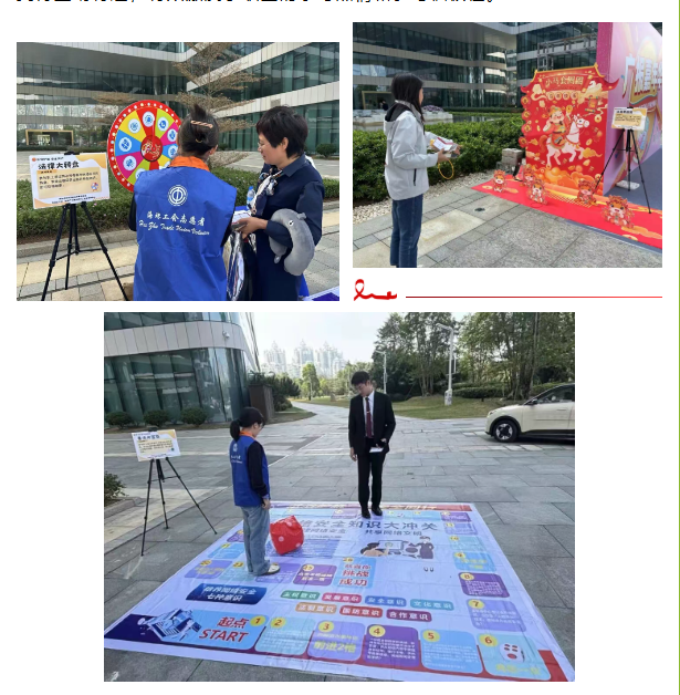 12月22日至12月23日,为提升职工的法律意识和自我保护能力,营造安全、和谐、法治的工作环境。在海珠区总工会的指导下,海珠区工会社会工作服务项目(广州粤穗社会工作事务所承接)、海珠区工会『联系广泛 服务群众』体系实践中心以“法治护航 安全同行”为主题举办了一场别开生面的普法游园会,将法律知识融入趣味互动,为职工打造沉浸式学习体验,成功吸引200余名楼宇职工踊跃参与,共赴这场法治学习之约。 创新模式,打破传统普法局限 为使普法活动更加贴近职工生活,活动创新性结合“午间充电站”,采用“组织优势 + 多方联动 + 职工参与”三位一体模式,充分利用午间碎片化时间,将普法服务送至职工身边。现场设有法律知识转盘、法盾套圈圈、普法大富翁等趣味互动区域,职工通过游戏闯关,在轻松愉快的氛围中深入了解网络安全法律法规,掌握实用法律知识。这种寓教于乐的形式,让原本枯燥的法律知识变得生动有趣,有效激发了职工的学习热情和参与积极性。 多元服务回应需求,法律支持暖心到位 活动现场除趣味游戏外,还专门设立法律暖心服务区。由专业律师为职工提供一对一的法律咨询服务,精准解答职工个人法律困惑,给予专业建议。同时,社工通过发放宣传手册、现场讲解等方式,向职工普及《工会法》、《网络安全法》的基本内容,切实提升职工的法律素养和自我保护能力。 场景体验贴近实际,学用结合实效突出 联合电商平台推出限时折扣与购物指引,穿插讲解虚假好评、钓鱼网站、退款诈骗等常见陷阱,助力职工识别风险,安心网购。 与车企合作开展试驾体验,模拟数据篡改、恶意导航等智能汽车安全风险,现场传授防范技巧,筑牢出行安全屏障。 携手银行揭露常见诈骗手法,深入讲解防诈知识与相关法律法规,守护职工财产安全。 此次普法游园会立足“小切口”,做实“大服务”,通过创新模式、多元服务和场景体验,成功打破传统活动时间与空间的限制,为职工带来全面、深入、实用的法治学习体验。 未来,海珠区工会社会工作服务项目将继续探索普法新形式,持续为职工的合法权益和安全保驾护航,助力营造更加安全、和谐、法治的工作环境。