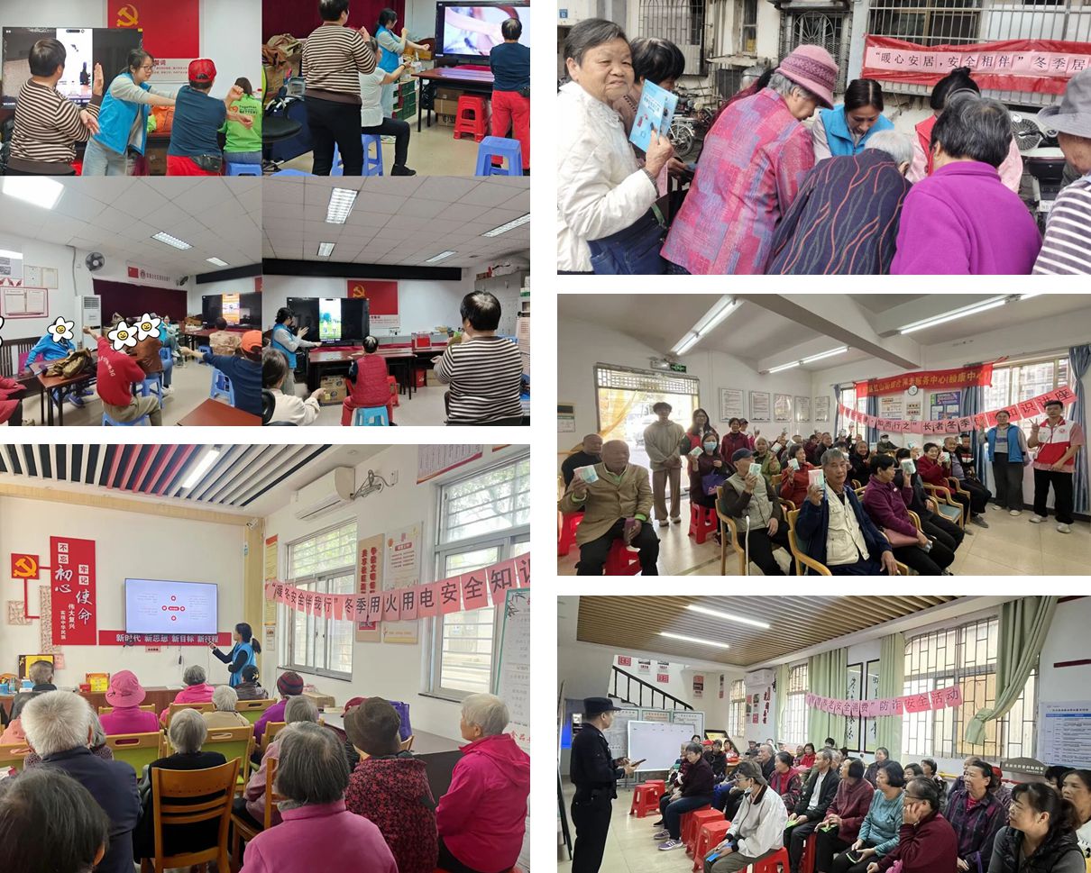 为切实保障辖区居民生命财产安全,全力构筑冬季居家安全坚实防线,有效预防各类居家安全事故,11月,粤穗红山、棠下街社工站聚焦冬季居家安全与健康主题,围绕用火、用电安全,穿衣保暖、饮食健康知识以及中医穴位保健操等内容,采用游园活动、入户探访、小组交流、专题讲座等多样化形式,开展冬季健康安全知识系列活动,累计服务困难特殊群体及社区居民近180人次。