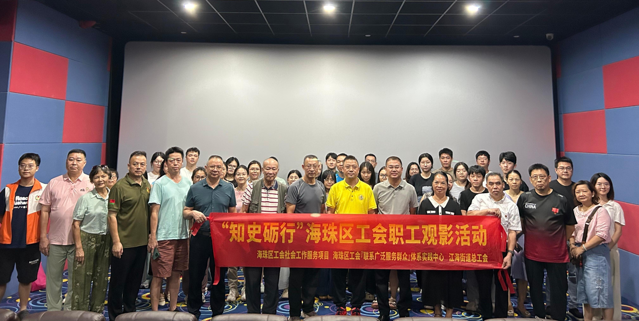 为纪念中国人民抗日战争暨世界反法西斯战争胜利80周年,2025 年 9 月 18 日,在海珠区总工会指导下,海珠区工会社会工作服务(广州粤穗社会工作事务所承接)项目联合江海街道总工会,在海珠区金聚街 19 号六福商业广场中影喜遇国际影城顺利开展 “知史砺行” 海珠区工会职工观影活动,组织辖区 80 余名新业态劳动者观看抗战题材电影《731》,以光影为媒介回溯历史,引导职工在铭记历史中坚定理想信念。 活动通过“观影+分享”的立体化设计,强化历史教育的情感共鸣。电影《731》以真实史料为依托,通过平民视角揭露侵华日军731部队在哈尔滨平房区以“防疫研究”为名,秘密实施细菌战、活体解剖等反人类暴行的罪恶历史。 “当看到同胞被当作实验品时,我全身都在发抖。”从事外卖工作的李先生分享道,“我们每天在街头送餐,看到的是车水马龙,繁荣昌盛,从未如此直观地感受到‘和平’的分量。这段历史提醒我们,安稳生活是无数先烈用生命换来的。” 此次 “知史砺行” 观影活动,不仅让新业态劳动者通过沉浸式体验筑牢爱国主义信念,更让他们切实感受到工会组织的关怀与温暖,增强了对工会的归属感与认同感。未来,海珠区工会将持续延伸服务链条,聚焦新业态劳动者需求,开展更多形式多样的文化与服务活动,凝聚职工力量,为城市发展注入更多活力。
