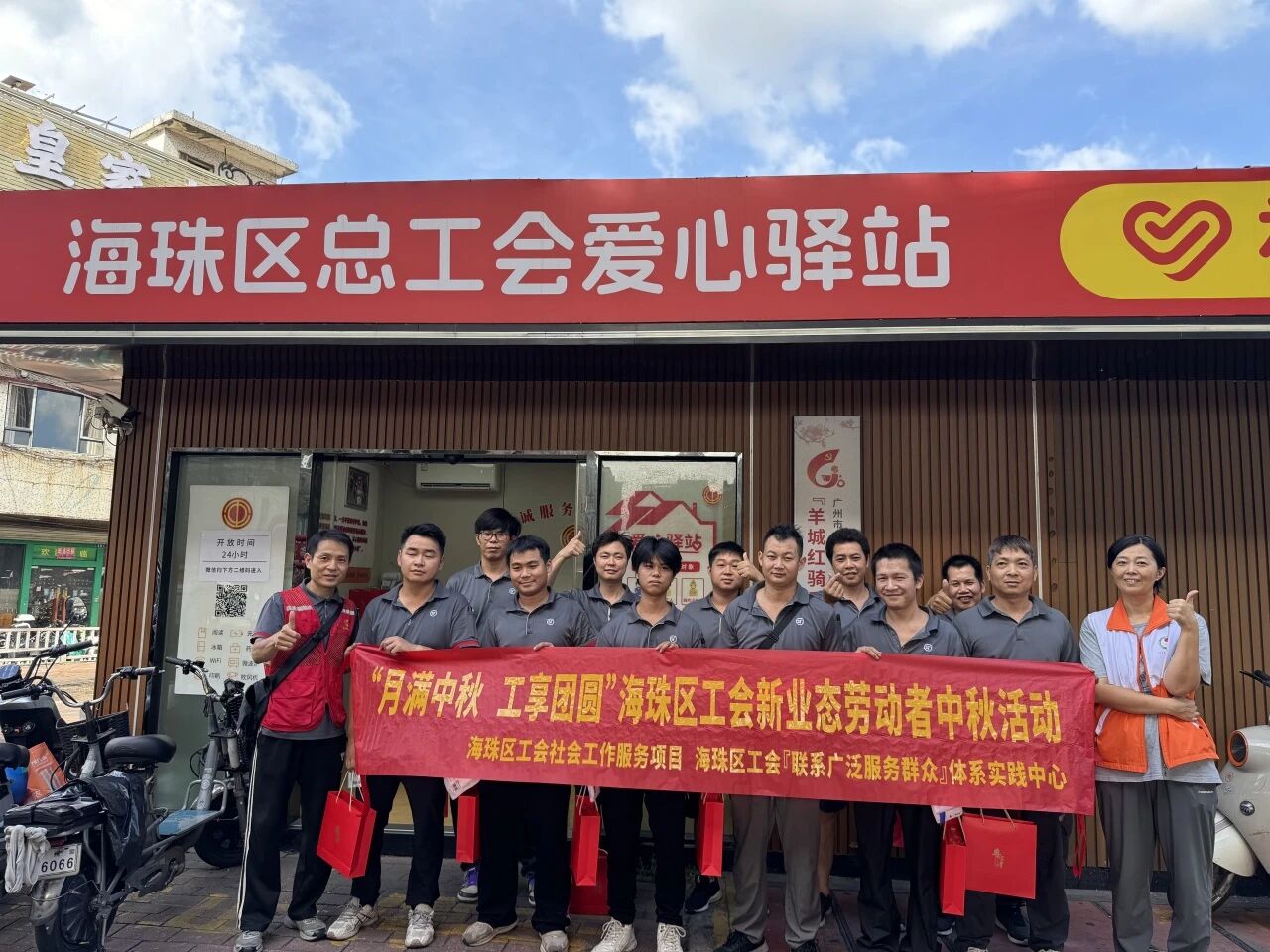 秋意渐浓,月满情浓。为弘扬中华民族传统文化,切实将工会组织的温暖送到新就业形态劳动者身边,2025年10月6日,在海珠区总工会的指导下,海珠区工会社会工作服务项目(广州粤穗社会工作事务所承接)在工会驿站(东晓南站)举办“月满中秋 工享团圆”中秋主题活动。活动吸引了30名快递员热情参与,大家共同度过了一段暖意融融的团圆时光。