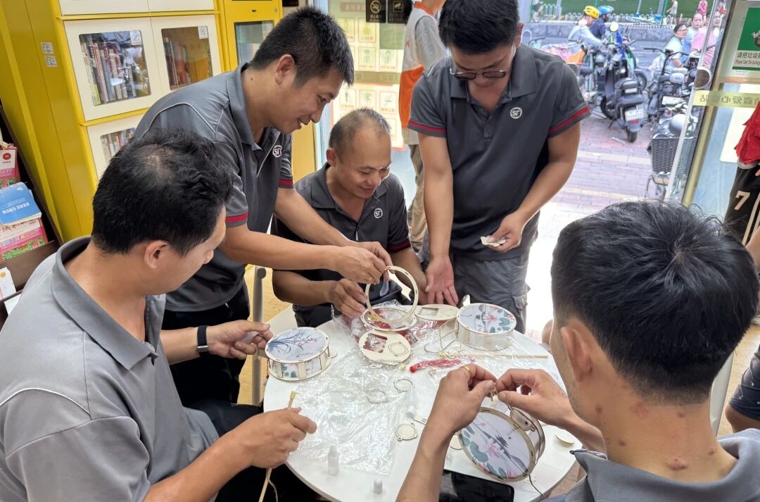 活动在轻松愉快的氛围中拉开帷幕。在工会社工的温情引导下,快递员们围绕“中秋记忆”和“奔波中的温暖瞬间”展开了轻松交流。“小时候家乡中秋要摆‘月光宴’,妈妈会把月饼、柚子摆得整整齐齐,全家围着月亮聊天”“上次送单时突遇暴雨,顾客不仅没催单,还专门煮了姜茶让我趁热喝”…… 一个个鲜活的故事、一句句真挚的分享,既有对故土习俗的深切怀念,也有对异乡善意的暖心回味。在真诚的倾听与共鸣中,现场笑声连连,快递员们彼此的距离悄然拉近,节日的思乡情愫也悄然转化为了 “他乡亦故乡” 的浓浓归属感,工会驿站内洋溢着家一般的温暖。