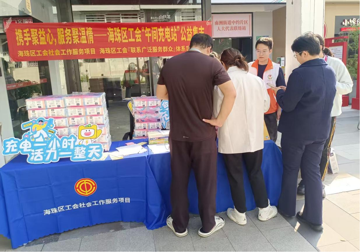 午间两小时,可以是一场放松身心的休憩,也可以是一次温暖有益的相遇。2025年12月23日中午,海珠区工会社会工作服务项目(广州粤穗社会工作事务所承接)、海珠区工会『联系广泛服务群众』体系实践中心,在海珠同创汇举办“携手聚益心,服务聚温情”——海珠区工会“午间充电站”公益集市活动,为职工的午间时光增添温暖与活力,共服务职工百余人。 现场公益服务贴近职工日常需求:专业中医师提供健康咨询,口腔专家开展口腔检查与保健指导,帮助职工关注自身健康;政策咨询台前,工作人员细致解答工会服务内容,增强职工权益保障意识;一旁的“阅读共享角”营造出安静温馨的氛围,职工通过图书漂流交换书籍、书写心得,在阅读中开阔视野、交流感悟。有职工表示:“以书会友,让午休更充实,也更有收获。” 互动体验区域气氛热烈:“指间迷宫”手势挑战帮助职工放松手部、缓解疲劳;“触感解压·随缘靶场”射击游戏则让职工在专注中释放工作压力。轻松有趣的设计,助力职工在短暂午休中快速调整身心状态。 本次活动以“携手”与“益心”为核心理念,从职工实际需求出发,将健康关怀、生活服务和互动交流有机结合,打造便捷可及的午间服务空间,职工们在获取实用服务、兑换暖心礼品的同时,也享受了一段愉悦放松、有益身心的午间时光。 未来,海珠区工会社会工作服务项目、海珠区工会『联系广泛服务群众』体系实践中心将继续围绕职工所需,拓展“午间充电站”的服务内涵与形式,努力构建一个让职工身心可憩、情感可依、成长可期的温暖驿站。