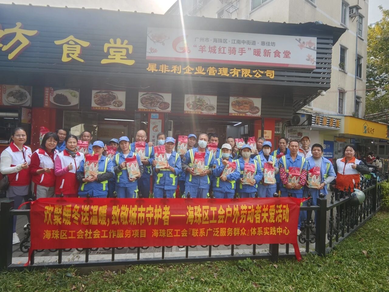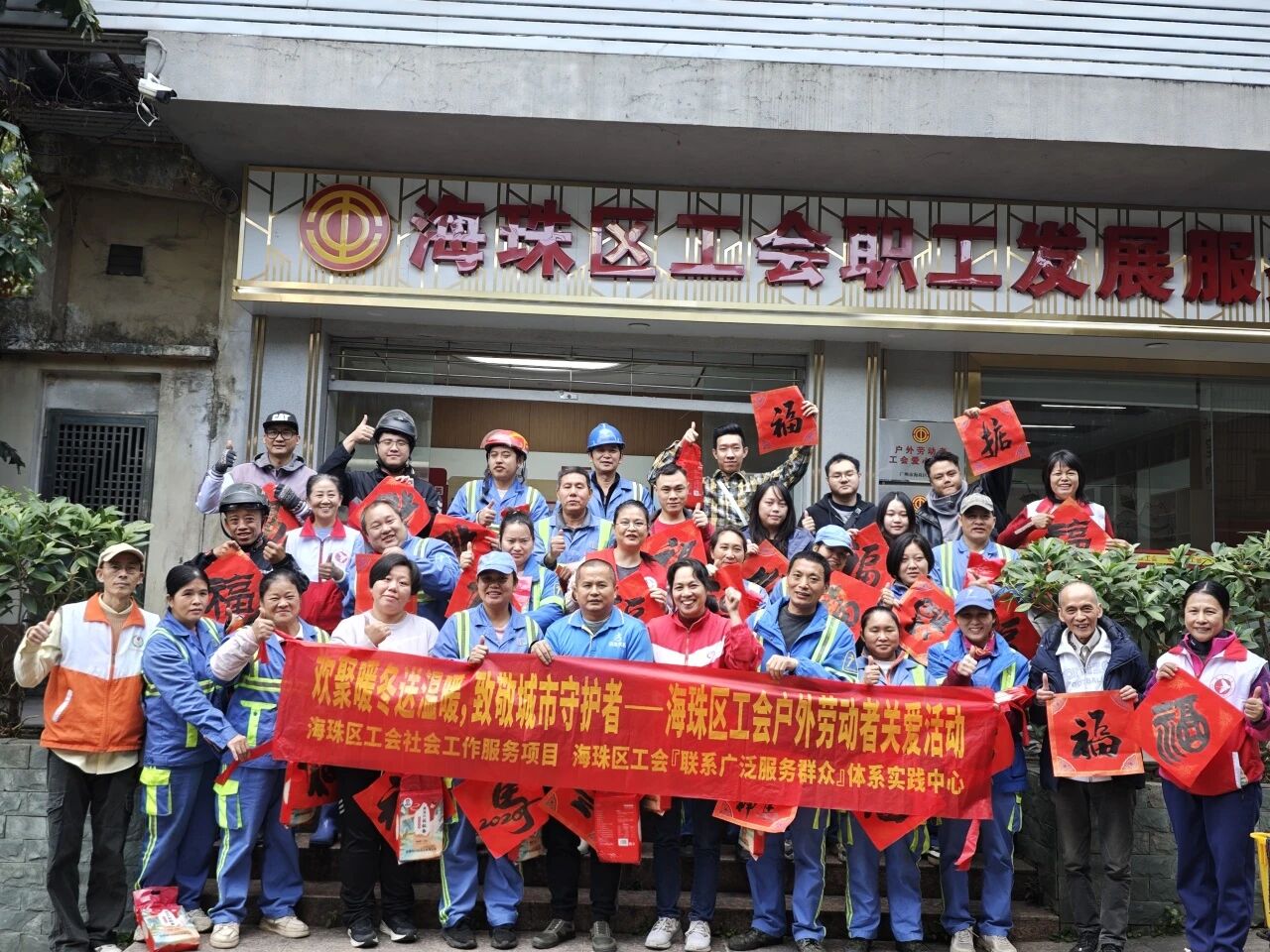 为深入践行工会对户外劳动者的关怀政策,打通服务户外劳动者的“最后一公里”,近日,海珠区工会社会工作服务项目(广州粤穗社会工作事务所承接)、海珠区工会『联系广泛服务群众』体系实践中心携手广东省让爱回家公益促进会,在海珠区工会职工发展服务中心、滨江街(小红艇)户外劳动者工会爱心驿站、江南中街道惠佳坊“羊城红骑手”暖新食堂以及江南中街道新时代文明实践所户外劳动者工会爱心驿站,共同开展“欢聚暖冬送温暖,致敬城市守护者——海珠区工会户外劳动者关爱活动”,为90名环卫工人送上了一份冬日的暖心关怀。 寒冬送暖,情系城市守护者 活动伊始,工会社工向环卫工人详细介绍了工会驿站所提供的各项服务,包括免费饮水、热饭、充电、休息及急救药品等,并说明了开放时间,方便他们在工作间隙随时使用。此举旨在提升驿站的知晓度与使用率,推动服务常态化,让工会驿站成为环卫工人的“温暖港湾”。 左右滑动查看更多 饺子飘香,共享温情好时光 “共享饺子宴·温暖到‘胃’”环节将活动氛围推向了高潮。工会社工与志愿者化身“暖心服务员”,为环卫工人送上热气腾腾的饺子和暖心的祝福。在轻松愉快的氛围中,环卫工人们围坐在一起,一边品尝着美味的饺子,一边愉快地交流着工作与生活中的点滴,在温馨愉快氛围中拉近了彼此间的距离。 心声共鸣,致敬最美守护者 随后的“致敬守护者·暖心赋能”环节设置了心声征集区,鼓励“城市美容师”们敞开心扉,分享自己的工作故事和内心感受。活动现场收集到了许多感人至深的暖心故事,展现了环卫工人坚守岗位、默默奉献的精神风貌,也增强了他们的职业尊严与归属感。正如环卫工人陈姐所说:“把街道扫干净很有成就感。能在这里说说心里话,收到大家的关心,让我觉得付出被看见了,干活也更有劲。” 本次活动不仅为环卫工人送去了实实在在的温暖,也向社会传递了尊重与关爱户外劳动者的正向能量。接下来,海珠区工会社会工作服务项目将继续秉承关怀户外劳动者的宗旨,进一步创新服务方式、拓展服务内容,努力为他们提供更坚实、更温暖的支撑,真正让每一位户外劳动者感受到“工会就在身边”。
