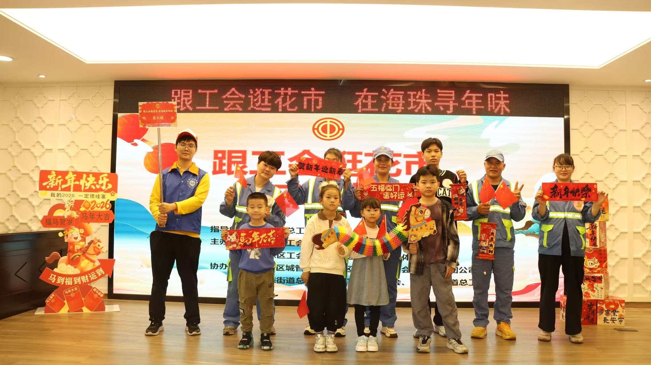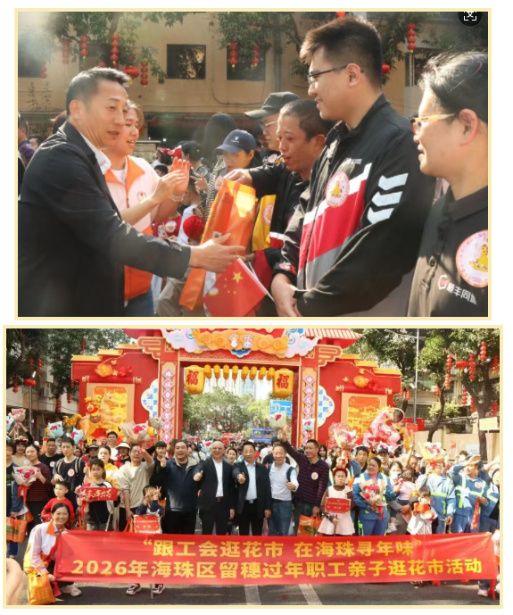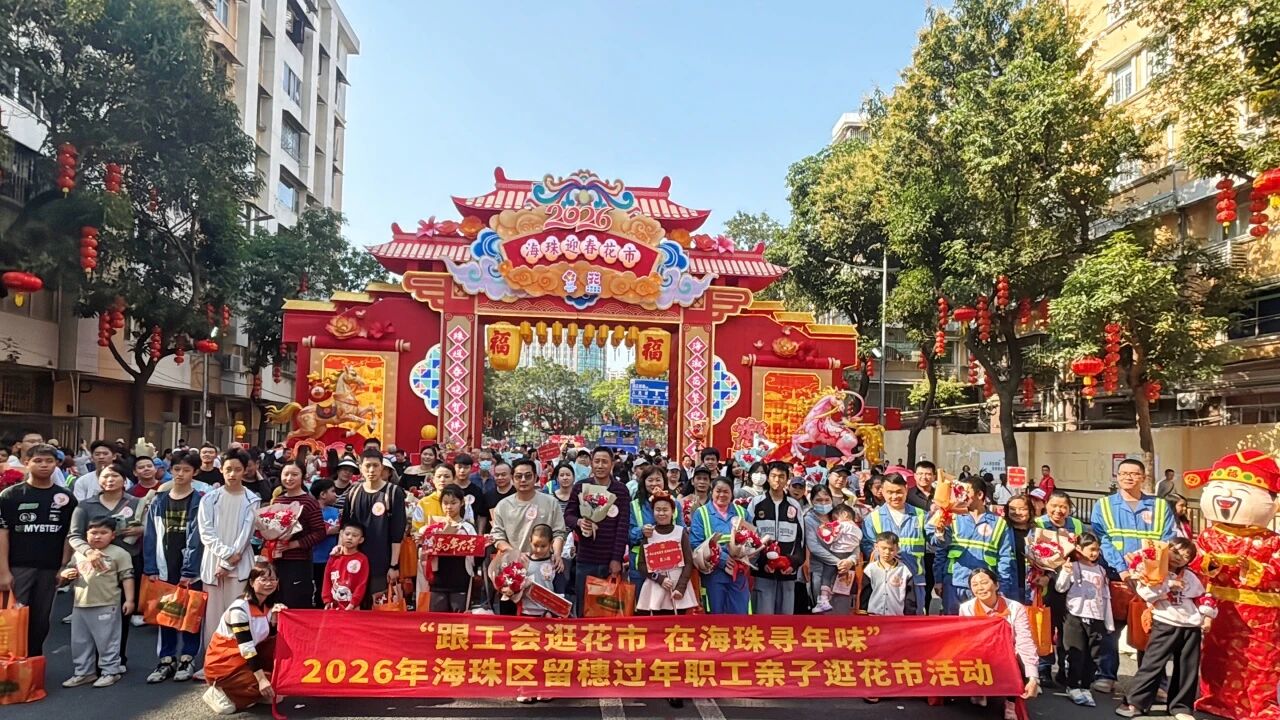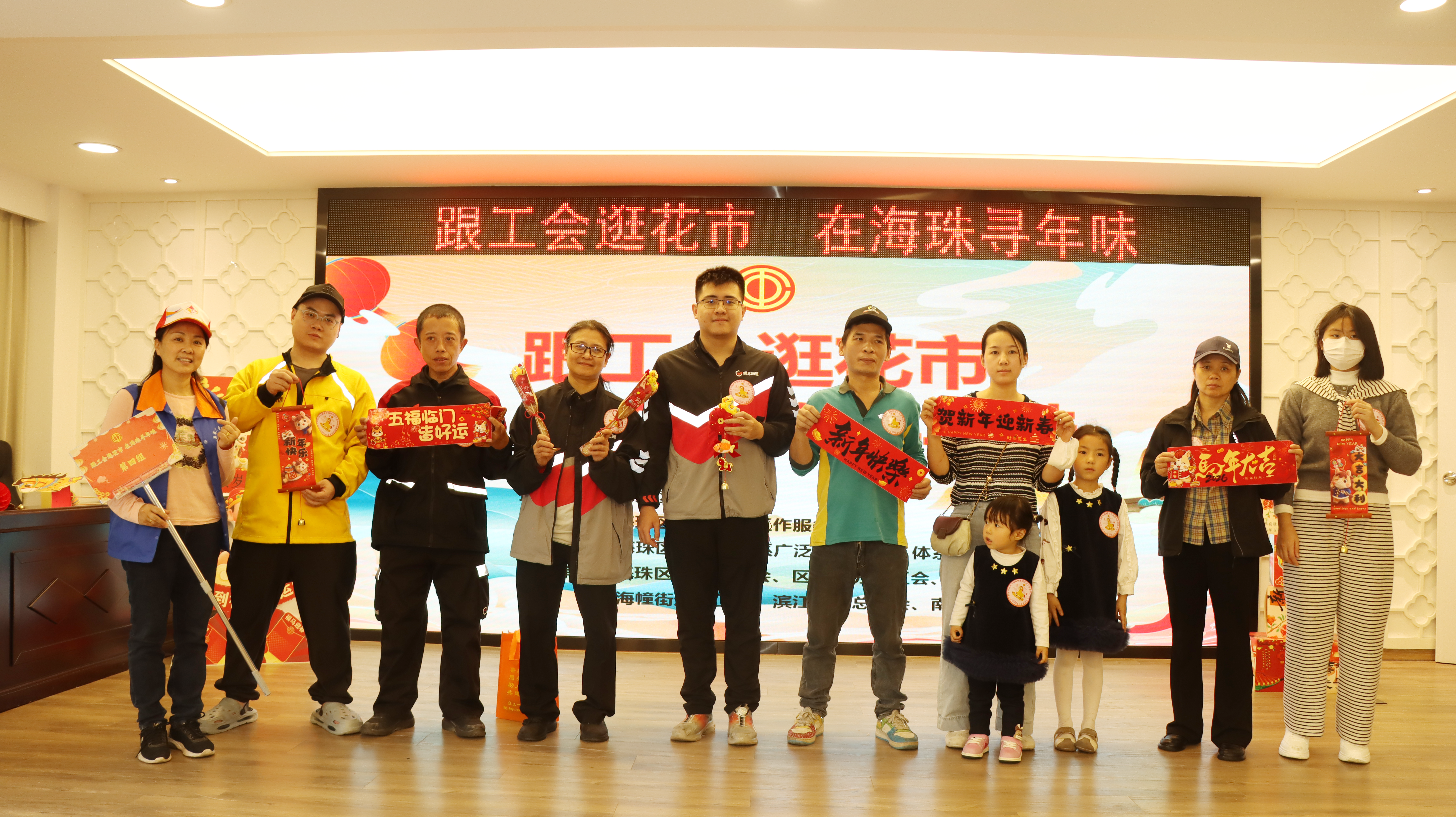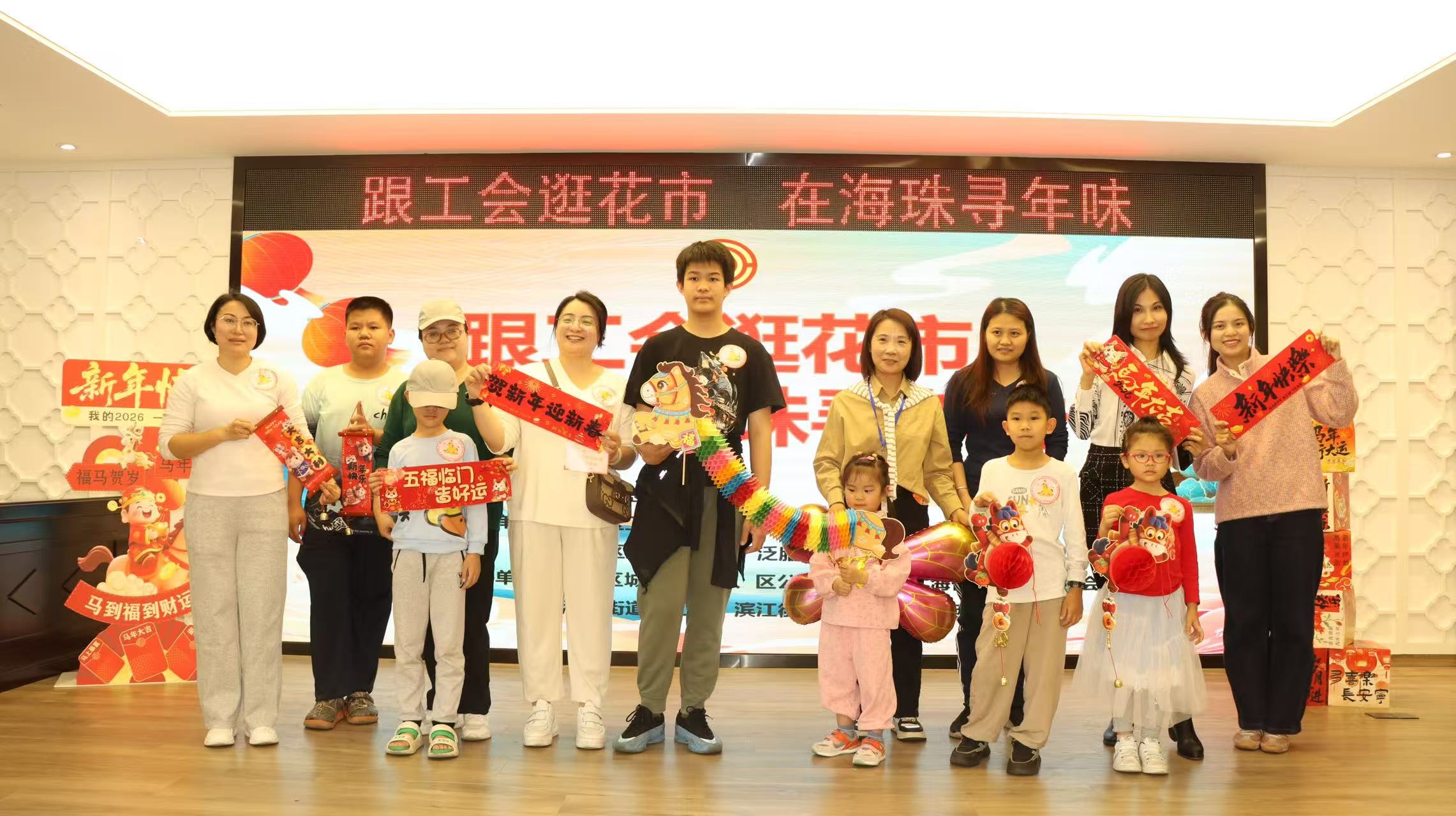 2月14日,海珠区总工会组织80余名留穗公安干警、环卫工人、安保人员、新就业形态劳动者及其子女,开展“跟工会逛花市,在海珠寻年味”主题活动。活动由海珠区总工会指导,海珠区工会社会工作服务项目(广州粤穗社会工作事务所承接)、海珠区工会『联系广泛服务群众』体系实践中心承办,旨在切实做好留穗职工关爱服务,让坚守岗位的“城市守护者”及其子女在海珠感受新春氛围与组织温暖。海珠区总工会党组成员、副主席余亮华出席活动,为参与家庭送上新春礼包及节日祝福,传递党和政府与工会组织的关怀。 为发挥先进典型示范引领作用,厚植劳动光荣的价值导向,本次活动特邀2024年广东省五一劳动奖章获得者廖志刚参与。活动现场,廖志刚分享了其在穗学习成长、立足岗位坚守奉献的奋斗经历,其敬业精神与责任担当引发在场职工强烈共鸣,进一步凝聚了崇尚劳动、致敬坚守的正能量,也让职工子女深刻体会到劳动者的价值。 活动当天,在工会社工的有序带领下,参与职工家庭从海幢街道办事处启程,步行前往花市牌坊,随后进入花市开展体验活动。现场年味浓厚,参与活动的职工及家人赏年花、挑年货,沉浸式感受“行花街、迎好运”的广府年俗。为提升活动参与度,传递年俗知识,活动还设置“天马行空·花海寻踪”“财神驾到·幸福打卡”两项趣味打卡任务。“天马行空·花海寻踪”环节中,孩子们在家长陪同下,寻找春联、年花中的“马”元素,家长借机向孩子讲解“马到成功”“龙马精神”等吉祥寓意,传递年俗文化;“财神驾到·幸福打卡”区,职工家庭争相与“财神”合影,记录新春喜悦,进一步丰富了活动体验。 此次活动还得到爱心企业支持,形成“工会搭台、企业参与、职工受益”的良好格局,爱心企业广东雅建建设科技股份有限公司负责人陈仁忠、广州粤穗社会工作事务所理事长谢建社专程到场,为每一位坚守岗位的职工送上年花,与海珠区总工会携手为留穗职工送上新春关怀。 而本次活动不仅是一次简单的年俗体验,更搭建起海珠区总工会与留穗职工之间的沟通桥梁,将“娘家人”的关怀精准传递至职工心中。快递员手捧新春礼包表示“工会总把我们放在心上”,外卖配送员接过鲜花后感慨“我们的付出被社会看到了,值了”,朴实的话语彰显了留穗职工的幸福感与归属感,也让“此心安处是吾乡”的美好愿景转化为可感知的现实温暖。 左右滑动查看更多 特别鸣谢 海幢街道总工会 滨江街道总工会 南华西街道总工会 海珠区城管局工会 海保集团公司工会 海珠区公安分局工会 (顺序不分先后) -END-